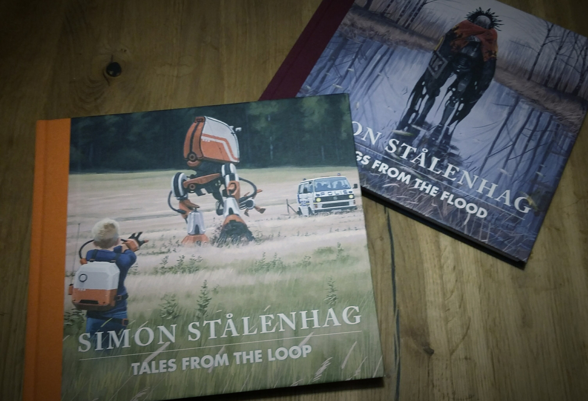 In beiden Bänden sind ganzseitige Farbbilder kurzen Texten eher assoziativ als illustrierend gegenübergestellt: geparkte Wartungsmaschinen stehen eingeschneit in der Landschaft herum, gigantische Maschinenteile werden von Vegetation überwuchert. Warm fällt das Licht aus den Fenstern auf die Schneedecke im Vorgarten, während sich gigantische Kühltürme am Horizont abzeichnen. Auf Schrottplätzen stapeln sich ausrangierte retro-futuristische Bauteile und Maschinen. Das alles wird liebevoll aufbereitet in zwei großformatigen Halbleinen-Bänden auf offenem Papier gedruckt serviert. Die luxuriöse Ausstattung der Bände wurde durch Crowdfunding der Publikation ermöglicht. Was auch dazu führte, dass Stalenhags digitale Gemälde schon fester Bestandteil jenes Stroms an Bildern geworden sind, die durch die Arterien der sozialen Medien gepumpt werden – auch Print wird hier Retro-Futurismus. Bestellen kann man die Bände bei Free League in Schweden. Dort kennt man die Zielgruppe und bietet gleich ein Rollenspielsystem mit an, das in Stålenhags Welt spielt. Selbstverständlich Pen & Paper.