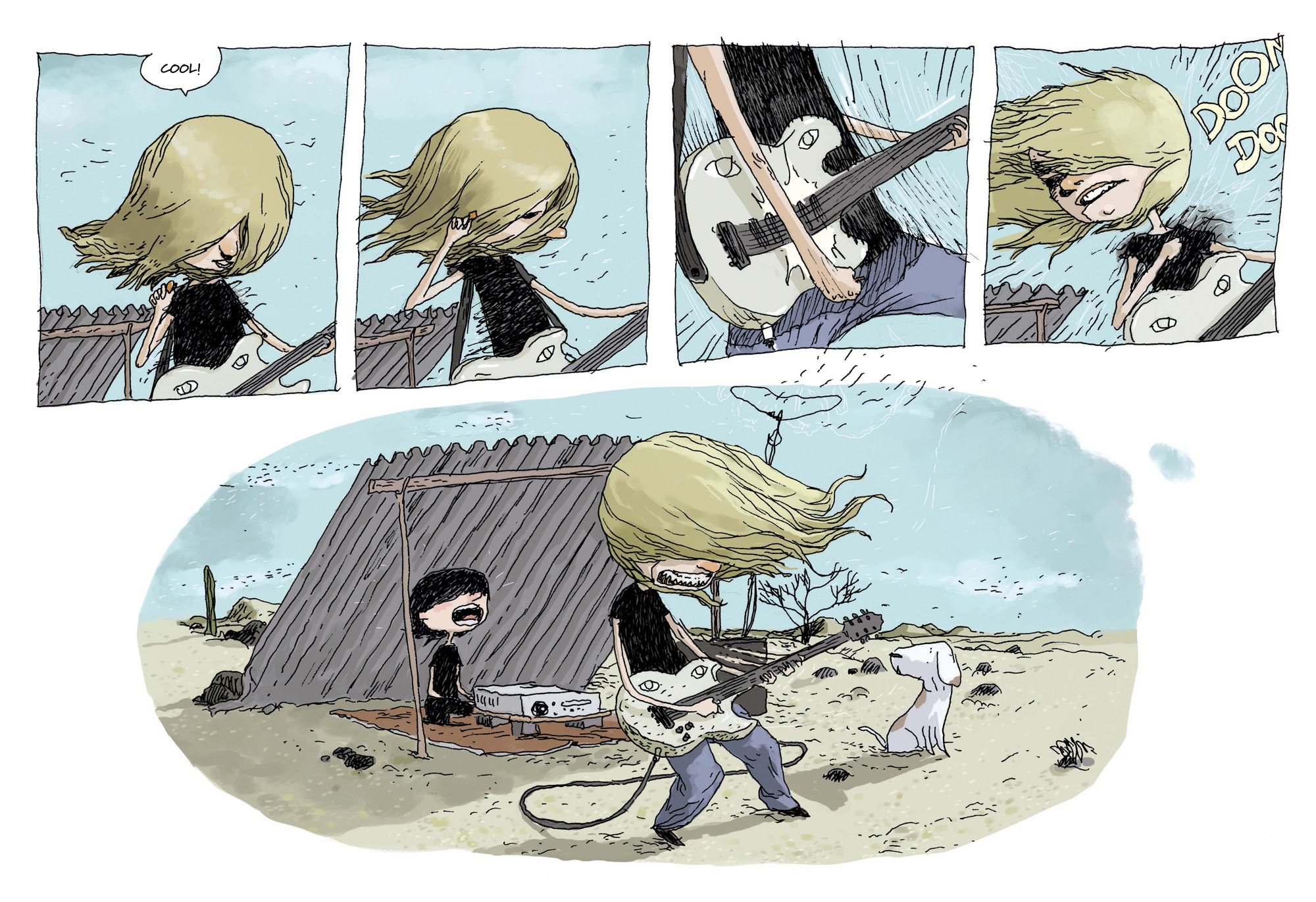 Der Schöpfer dieses außergewöhnlichen Buches ist der mexikanische Künstler Tony Sandoval. Egal welchen seiner Comics man sich greift, es erwartet einen immer eine bis zum Bersten gefüllte fantastische Geschichte, in denen Themen wie Liebe, Freundschaft oder ähnlich Essentielles behandelt werden. Angereichert mit allerhand fantastischen Elementen entsteht so eine einzigartige Melange, die einen unglaublichen Sog aufbaut. „Doomboy“ ist dabei keine Ausnahme. Auf der einen Seite geht es um einen Verlust, den unser Protagonist durchleben und verarbeiten muss, auf der anderen erleben wir die Aufarbeitung in Form der geliebten Gitarrenmusik, gespickt mit einem gekonnten Kommentar zur Kraft der kreativen Arbeit im Umgang mit tiefgreifenden Gefühlen.