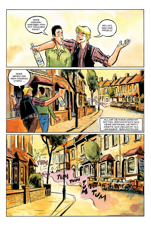 Die Zwillingsbrüder Gabriel Bá und Fábio Moon haben Neil Gaimans bereits 2006 erschiene Kurzgeschichte „How to talk to girls at parties“ in eine Comic-Miniatur verwandelt, die bei jedem, der selber schon mal fünfzehn war (und vielleicht sogar auf einer Party), eine Saite zum Klingen bringe dürfte. Gaimans Text spielt äußerst wirkungsvoll mit den Erinnerungen daran, wie elektrisierend sich die Mischung aus Neugier, Faszination und Unsicherheit anfühlt, mit der man sich als Teenager in die Welt hineintastet, und bringt wunderbar naheliegend auf den Punkt, wie Jungen und Mädchen in diesem Alter einander wahrnehmen: als Wesen von einem anderen Planeten. Die luftig aquarellierten Bilder von Bá und Moon fügen dem eine Ebene des Traumhaften, des aus zeitlicher Distanz Erinnerten hinzu.